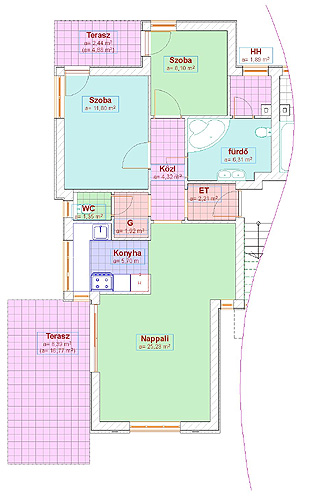 elöl, és 5nm2-es teraszok oldalt, hátul) méretben kerülnek kialakításra. (A nettóméret meghatározásánál természetesen nem